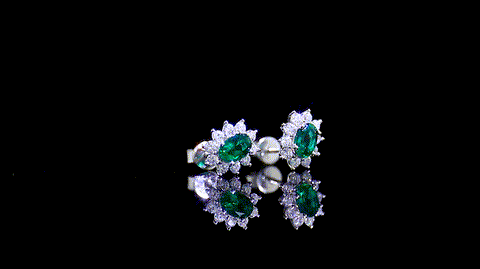 FEELIVE Oval Flower Lab Created Emerald Silver Earrings (0.8 ct Oval Moissanite)