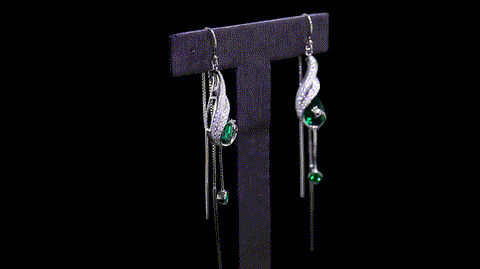 FEELIVE Peacock Tassel Lab Created Emerald Silver Earrings (3.95 ct Pear Moissanite)